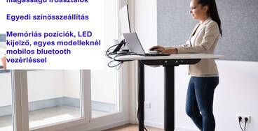 Memóriás, LED kijelzős, bluetooth vezérlésű ülő/álló asztalok az egészséges irodai vagy otthoni munkavégzéshez.